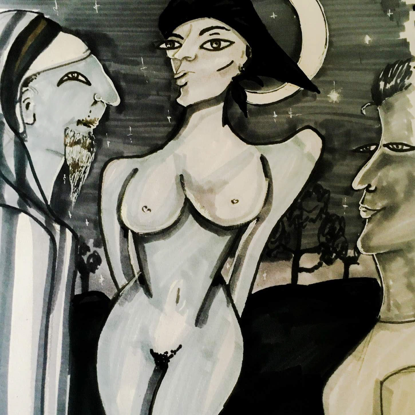 "From Liang’s Nude to My Patterned Soul"36"x48" Mixed Media Blending Roberto Liang’s expressive painting style with Moroccan ornamentation